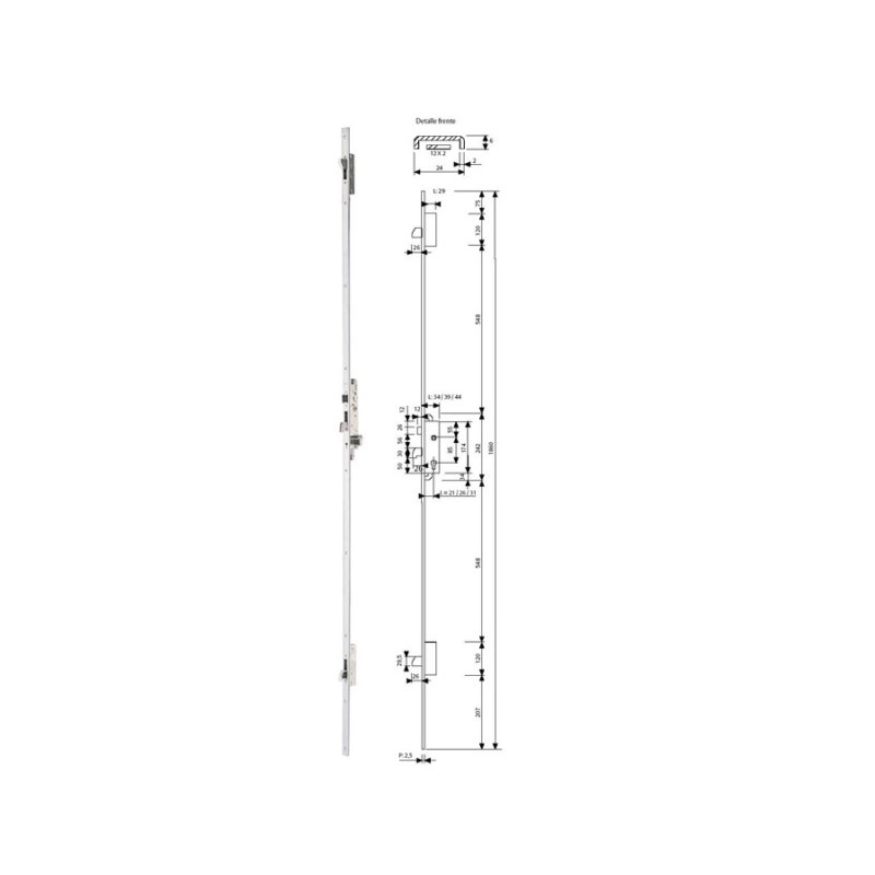 CERRADURA MET.EMB. 2230 E-26MM MULTIPUNTO 3 CIERRES FRONTALE