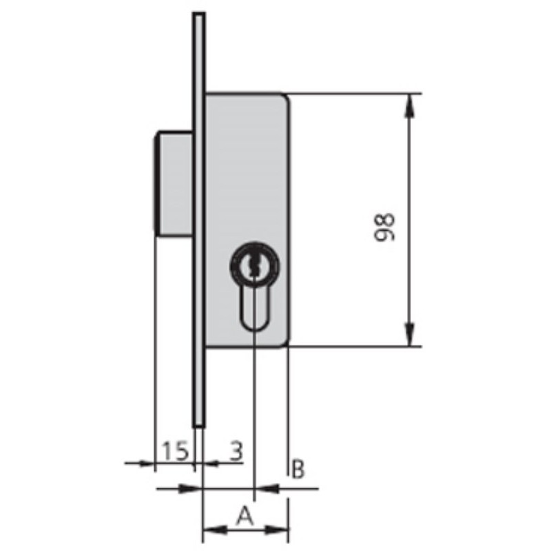 CERRADURA MET.EMB. 1983A E-20MM PALANCA CIL.NIQ. HIERRO NIQU